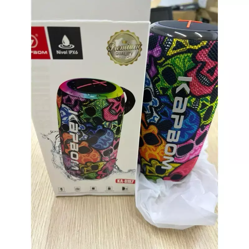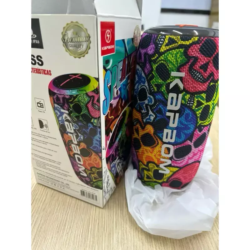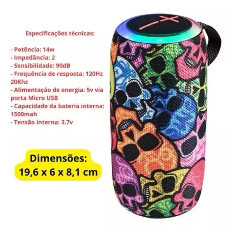 Caixa de Som LED RGB Bluetooth Portátil TWS Estampa Caveira 14W