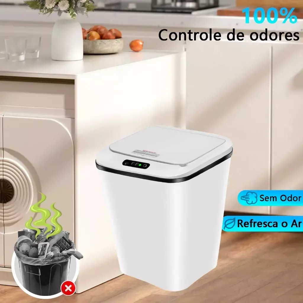 -Detecção dos movimentos em até 20 cm de distância, não há necessidade de tocar no balde de lixo