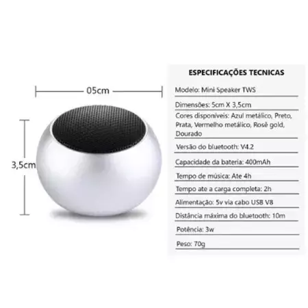 Potência impressionante: Apesar do seu tamanho compacto, a mini speaker de 3W entrega um som potente e impactante, garantindo que você aproveite suas músicas em alto e bom som.
