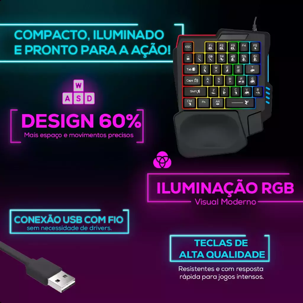 - Compatível com PC, Notebook, MAC, PS4 e XBOX.